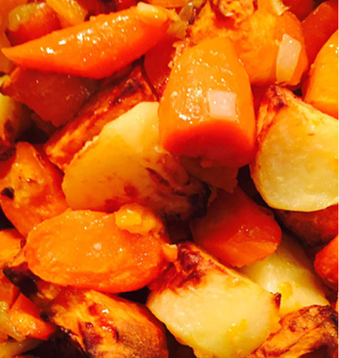Roasted Potato, carrot, onion, pumpkin, sweet potato and crushed garlic until golden brown