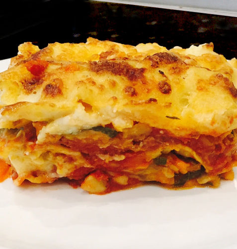 Sautéed pumpkin, zucchini, button mushrooms, brown onions, layered with Napoli sauce, béchamel sauce and fresh pasta